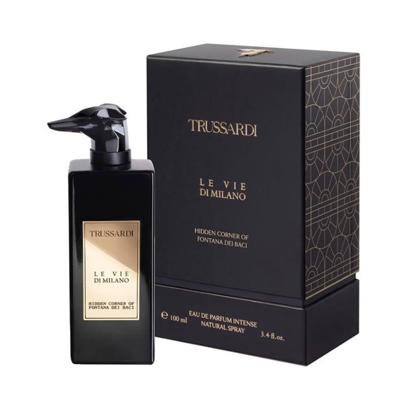 Trussardi Le Vie Di Milano Hidden Corner Of Fontana Dei Baci е изискана унисекс парфюмна вода, лансирана през 2023 година като част от престижната колекция "Le Vie Di Milano" на италианската модна къща Trussardi. Ароматът е вдъхновен от скритите кътчета на Милано, по-специално от легендарния "Фонтана дей Бачи" (Фонтанът на целувките), известен със своята романтична атмосфера. Парфюмът съчетава минерални акорди с пикантни и дървесни нотки, улавяйки елегантността и мистерията на града. Кехлибарено-ориенталската композиция е подходяща за мъже и жени, търсещи изтънченост и дълбочина. Благодарение на своята богата и многопластова структура, ароматът е подходящ за носене през всички сезони, като особено добре се разгръща в по-хладните месеци.