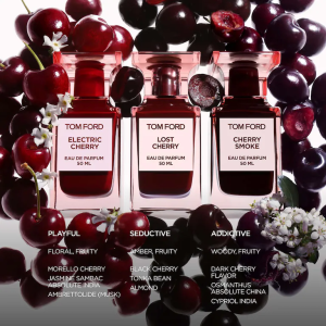 Tom Ford Lost Cherry е унисекс парфюм от колекцията Private Blend, създаден през 2018 г. Този луксозен аромат съчетава сочната сладост на черна череша и горчив бадем с елегантни флорални нотки от турска роза и жасмин самбак. Топлата база от ванилия, тонка, сандалово дърво и кедър придава дълбочина и чувственост. Идеален избор за вечерни събития и специални поводи.